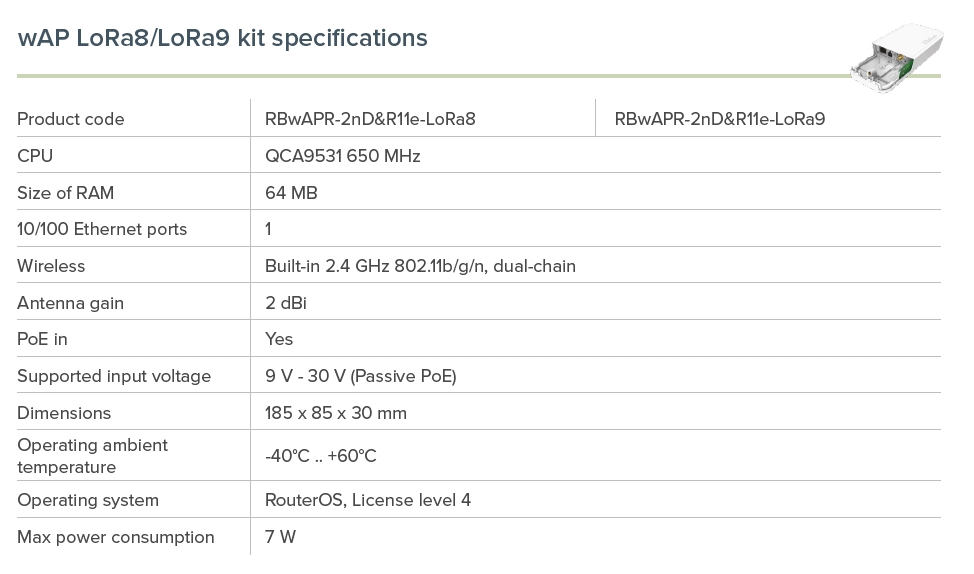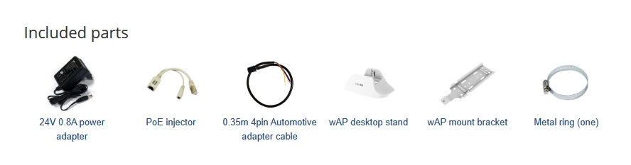 Jednotka integrována ve venkovním vodotěsném krytu modelu wAP s 2.4GHz Wi-Fi rozhraním s ethernet portem.