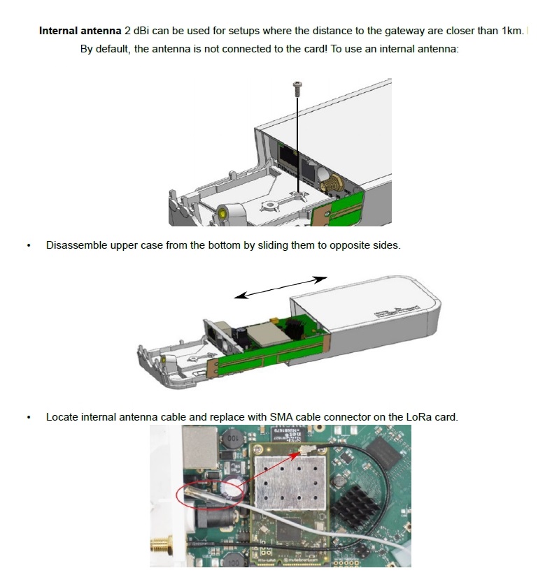 Jednotku lze používat s integrovanou 2dBi anténou pokud je dosah do max. 1km postačující (anténu je třeba před použitím zapojit viz. galerie).