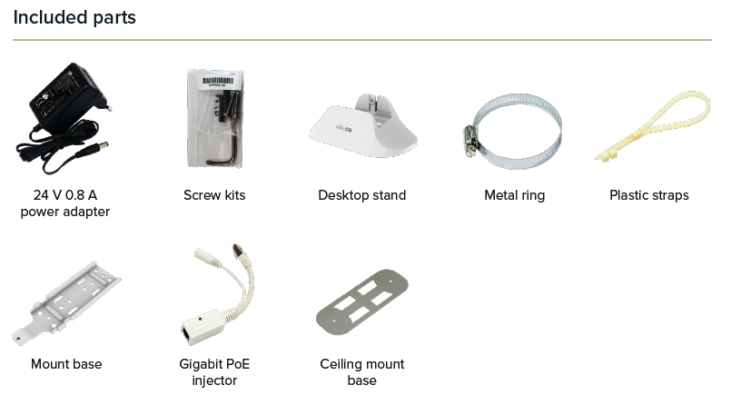 Součástí balení je napájecí zdroj, držák, stojánek a bezpečnostní šroub eliminující riziko neoprávněného vniknutí do zařízení.