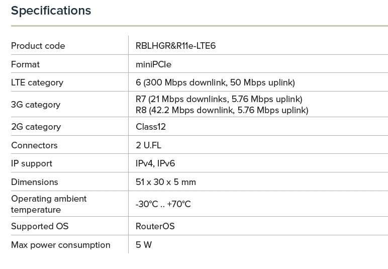 MIKROTIK • R11e-LTE6 • 2G/3G/LTE6 miniPCI-e modul