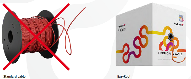 Novým komfortním řešením kablů FIBRAIN AERO-DR03 je systém EasyReel. Tento systém používá způsob navíjení a balení kabelů pomocí patentu Reelex, který řeši většinu problémů typických pro kabely navinuté ne standardních cívkách nebo bubnech. Celým nápadem je navinout kabel na cívku osmičkovou metodou specializovaným navinovacím strojem. Řešení, které se často nachází ve více párových měděných kabelech byla testovaná a implementována spoločností FIBRAIN pro kabely z optických vláken.