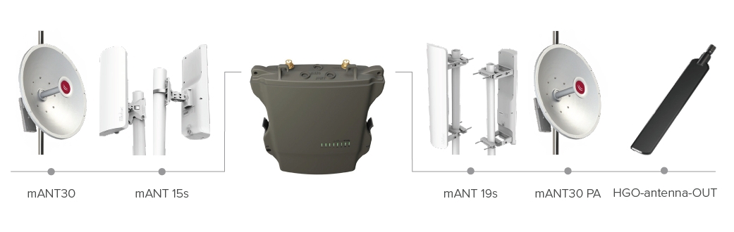 Volbou pro nižší rádius pokrytí může být duální anténa HGO-antenna-OUT