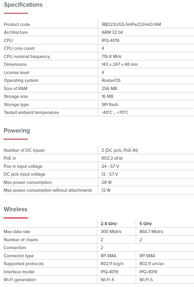 MIKROTIK • RBD23UGS-5HPacD2HnD-NM • 2.4/5GHz outdoor jednotka NetMetal ac2