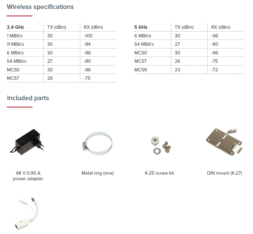 Nabízí 3.3dBi zisk (2.4 GHz) a 5.5-7.1dBi zisk (5GHz).