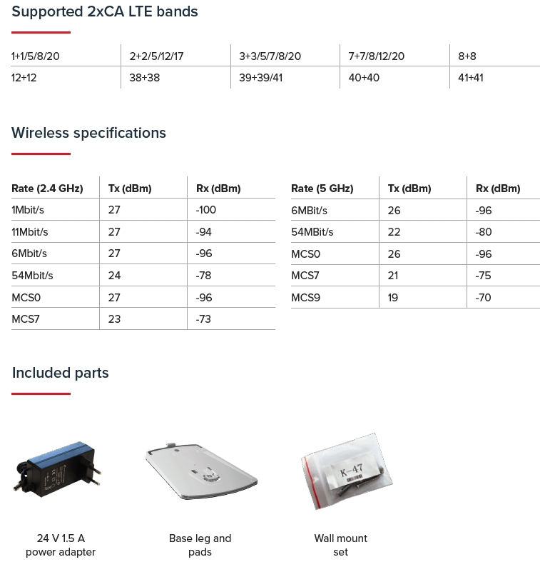 Duální 2,4 a 5GHz přístupový bod standardu 802.11ac s podporou nejnovějších standardů 802.11n/ac, LTE modemem CAT6 a s pěti gigabitovými RJ45 porty.