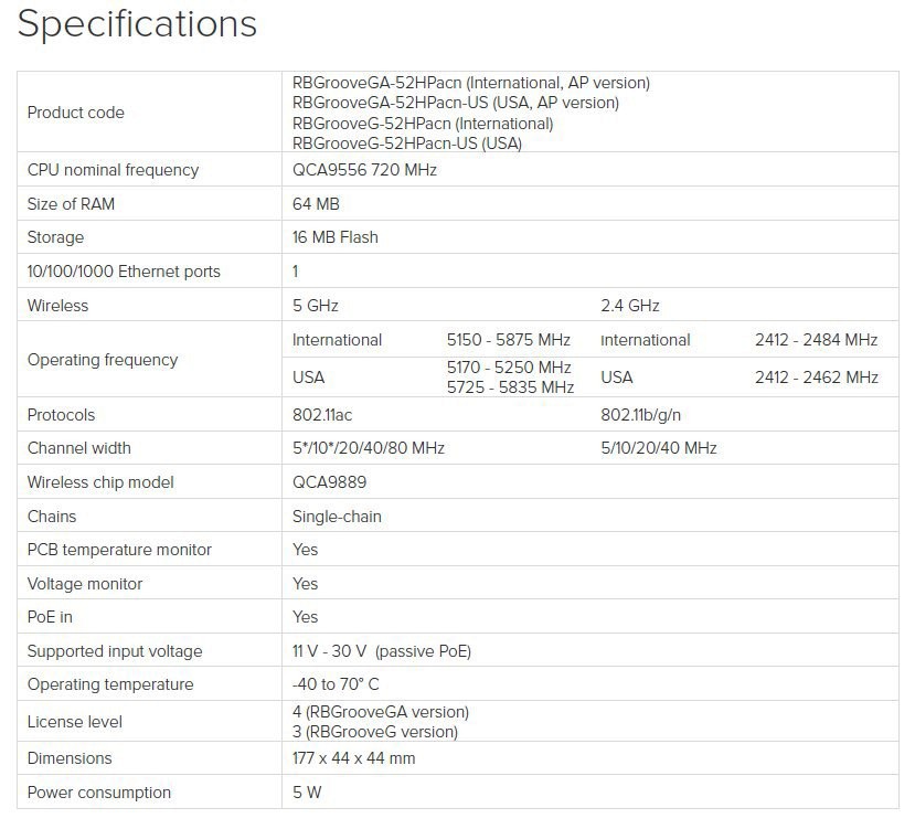 BAZAR • MIKROTIK • RBGrooveGA-52HPacn • 2,4/5GHz 802.11a/b/g/n/ac outdoor jednotka s omni anténou (ROS L4)