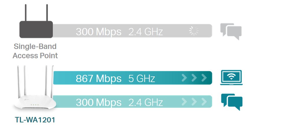 Bezdrátový access point TP-LINK TL-WA1201 je určen k vytvoření nebo rozšíření vysokorychlostní bezdrátové sítě nebo k připojení několika zařízení s rozhraním Ethernet, jako jsou např. herní konzole, adaptéry digitálních médií, tiskárny nebo síťová úložišt