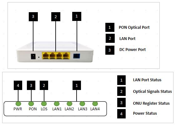 ONU WDS504G-E-R410 spolu s OLT realizují flexiblní síťovou strukturu se snadnou údržbou a nabízí kompletní řešení pro FTTx. ONU WDS504G-E-R410 má 1 PON port a 4*10/100/1000 M BASE-T porty .