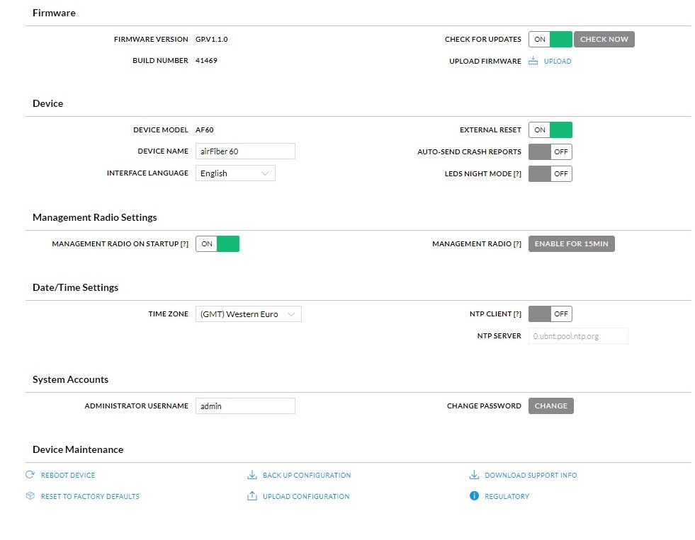 Výchozí jméno a heslo: ubnt / ubnt