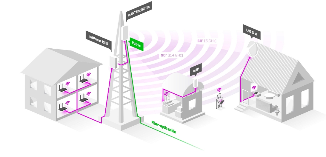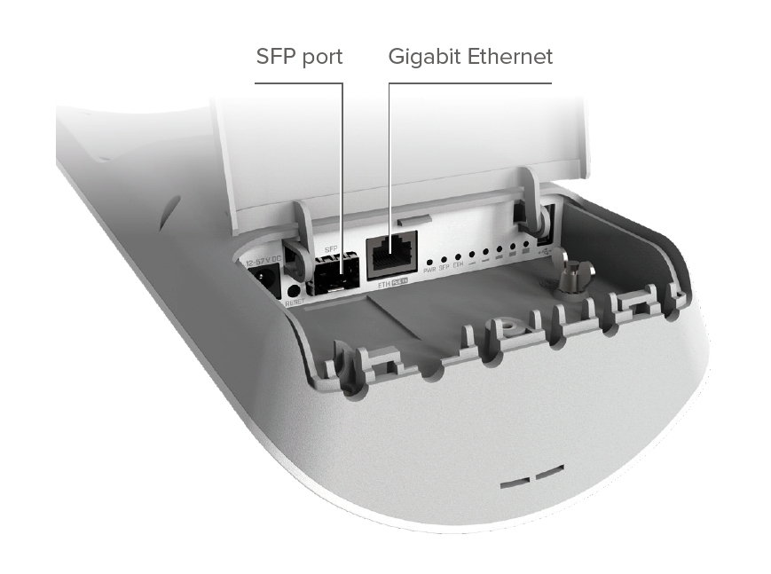 All-in-one venkovní duální řešení v obou pásmech 2.4/5GHz s podporou PoE dle 802.3af/at, Gigabitovým Ethernetem a SFP portem pro optickou konektivitu.