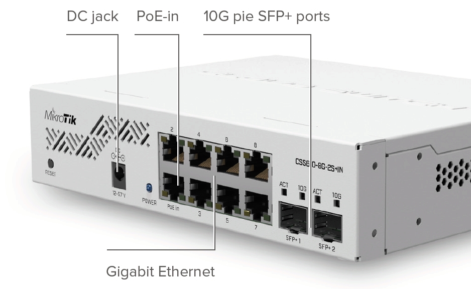 MIKROTIK • CSS610-8G-2S+IN • 10-portový switch (8x GB Eth, 2x SFP+)