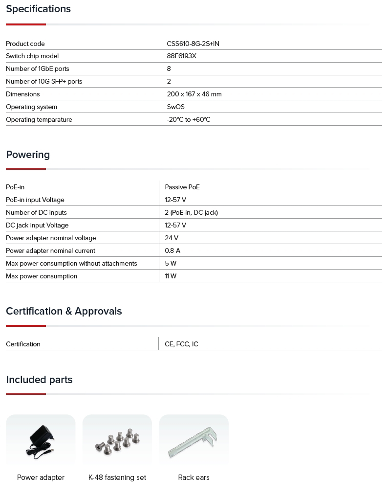 Product code: CSS610-8G-2S+IN
