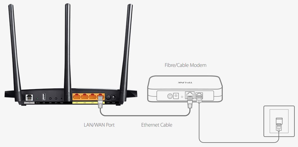 Jako jedno záložní řešení můžete využít port EWAN, který routeru Archer VR400 umožní přijímat připojení z kabelových i optických modemů přes síťový kabel Ethernet.