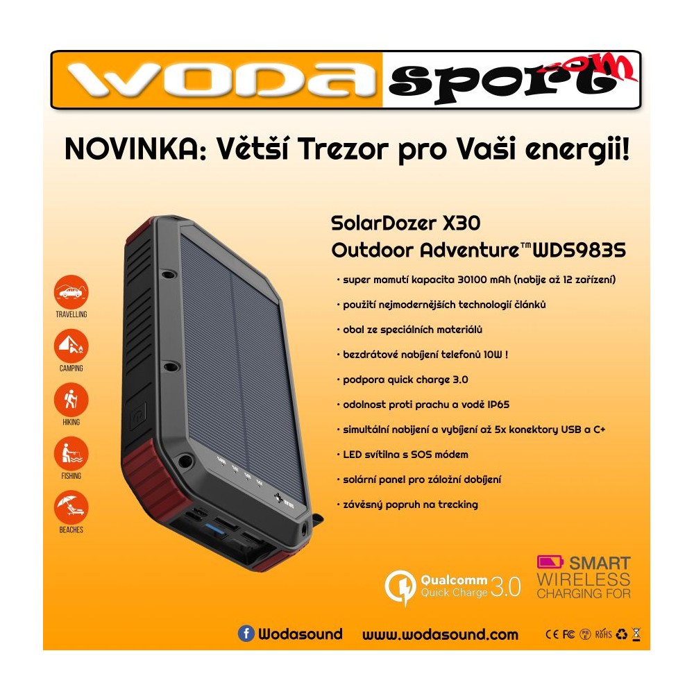 Wodasport • X30 • Solární powerbanka Wodasport® SolarDozer X30, Outdoor Adventure™ 30100 mAh 7v1