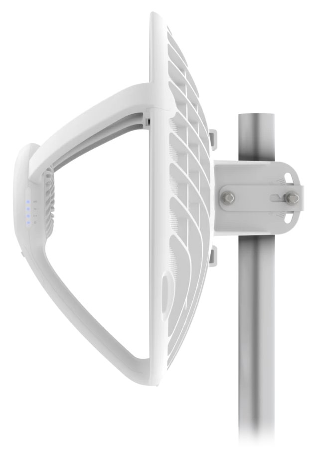 AirFiber 60 LR je velmi robustní jednotka včetně kovového precizního držáku, sítové parabolické antény se ziskem 38 dBi.