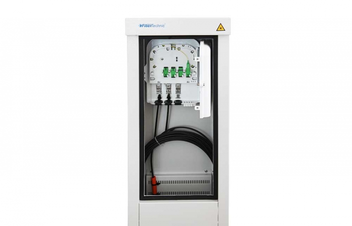 Optický sloupek určený pro síť PON FTTH jako distribuční bod pro připojení k rodinným domům pomocí optických kabelů. Ve sloupku je připraven adaptér 3v1 (AD3, AD4, AD6) pro montáž přepínače pro 12-48 svarů a speciální panel pro instalaci kabelů, mikrotrub