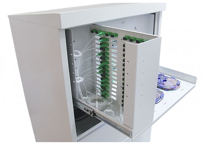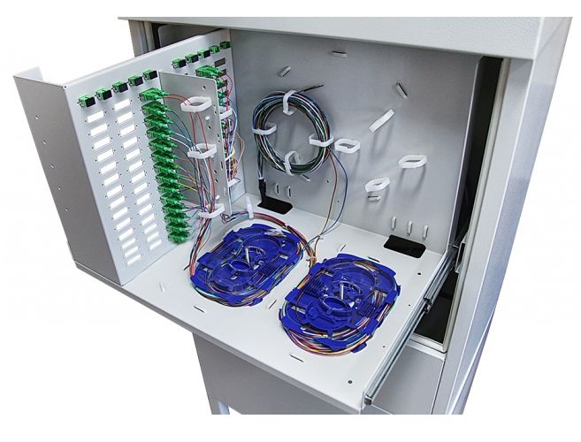Uvnitř je prostor pro 108 adaptérů SC Duplex, 10x adaptérů SC Simplex a prostor pro náhradní kabel.