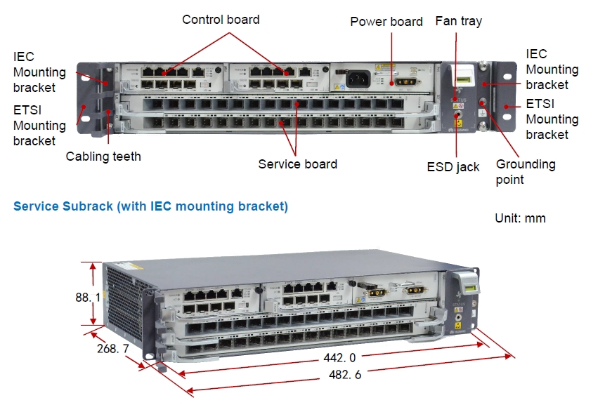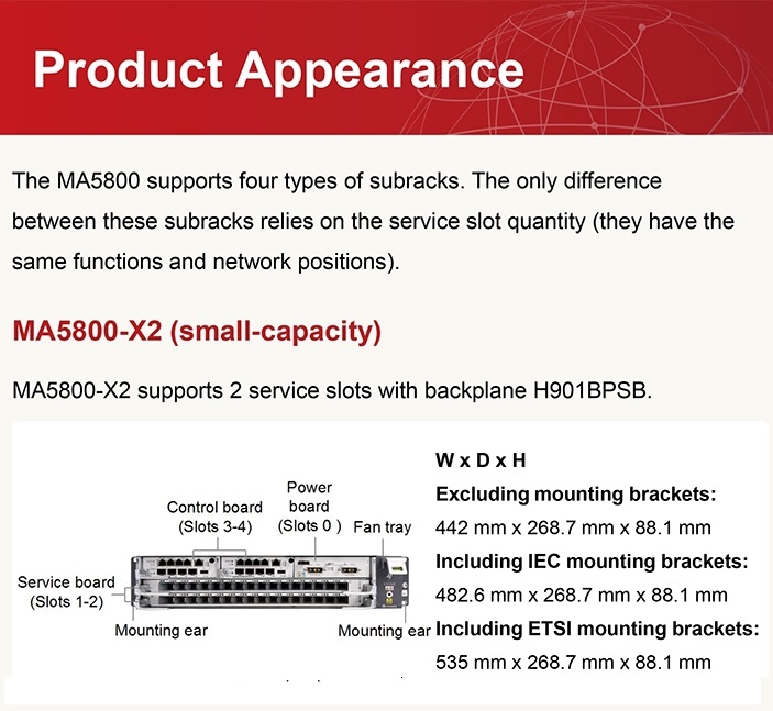 Sestava Huawei • MA5800-X2-V8 • OLT TERMINAL bez GPON BOARDu (2X MPSC, AC)