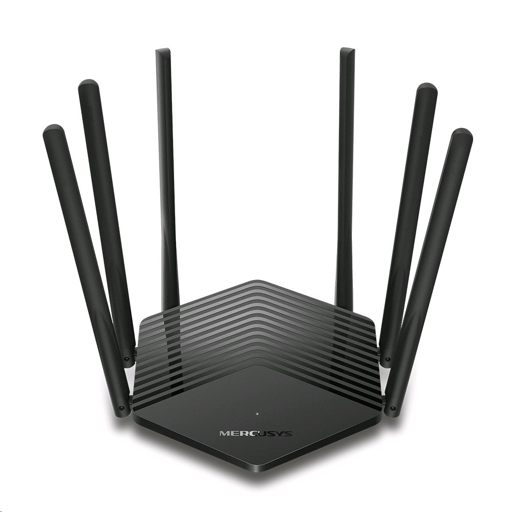 Mercusys MR50G</b> je moderní designový router s hexagonovou základnou <b>s 6 fixními anténami se ziskem 5dBi</b>, dvěmi <b>Gigabitovými LAN</b> a jedním <b>Gigabitovým WAN</b> portem.