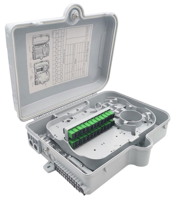 FTTH distribuční box se používá jako koncový bod pro přívodní konektivitu. V tomto boxu lze provádět spojování, rozdělení a distribuci optických vláken. Mimoto poskytuje box solidní mechnaickou ochranu při výstavbě optických sítí.