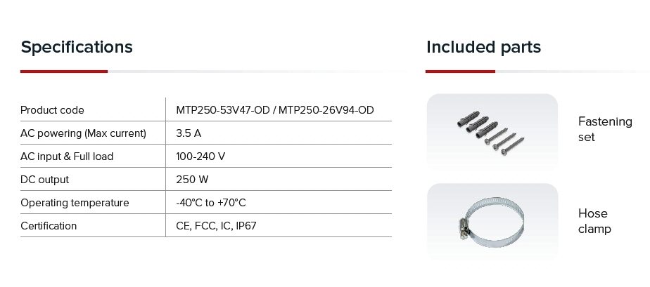 Zdroj MTP250-53V47-OD nabízí výstupní napětí 53 V a výkon 250 W, který se hodí například pro síť bezpečnostních kamer PTZ.