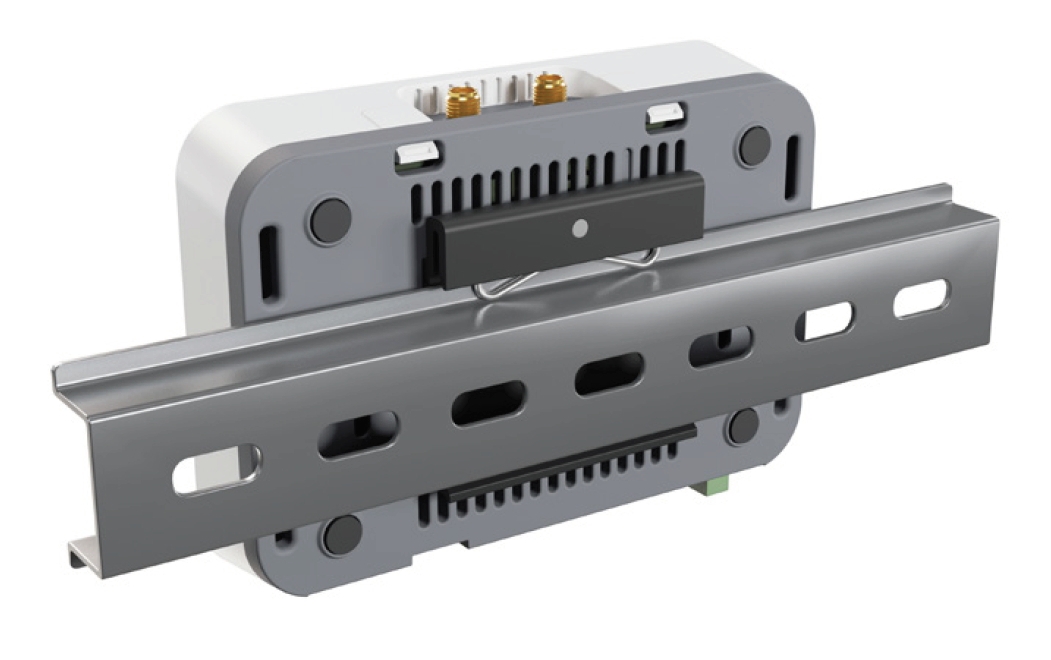 Dodává se s držákem na lištu DIN, který umožňuje snadnou integraci s nejrůznějšími konfiguracemi: monitoringu majetku, průmyslové výroby atd.