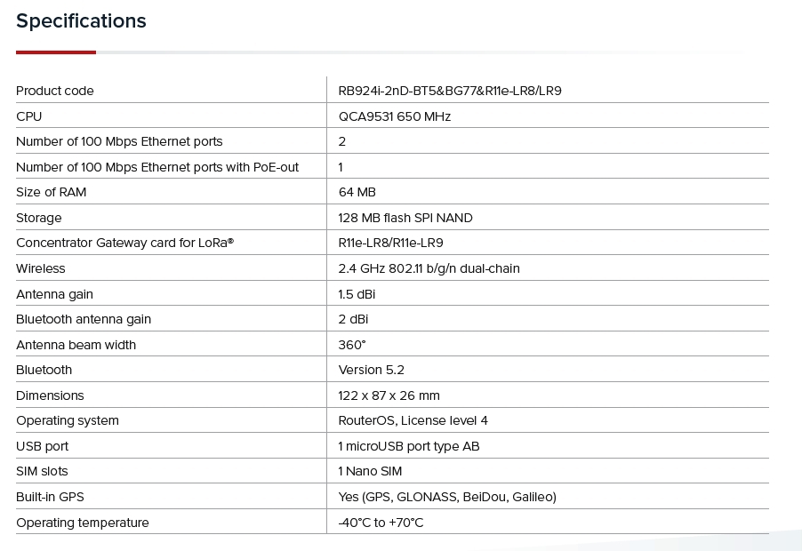 MIKROTIK • RB924iR-2nD-BT5&BG77&R11e-LR9 • IoT Gateway KNOT LR9 kit