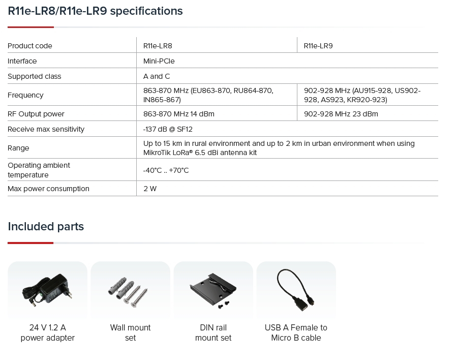 Range: Up to 15 km in rural environment and up to 2 km in urban environment when using MikroTik LoRa® 6.5 dBi antenna kit