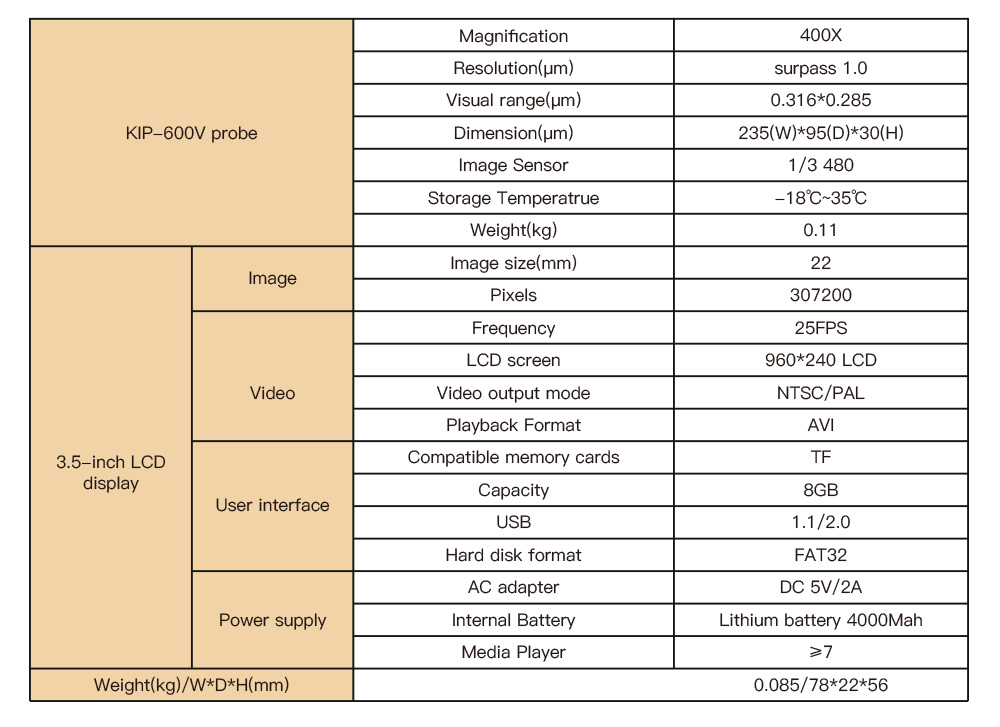 KIP-600V je diagnostická sada skládající se z 3,5palcového video displeje a vysoce výkonné sondy s jednosměrným ostřením. Inteligentní, rychlý a pohodlný nástroj pro vnitřní i venkovní instalace disponující obrazem s vysokým rozlišením.