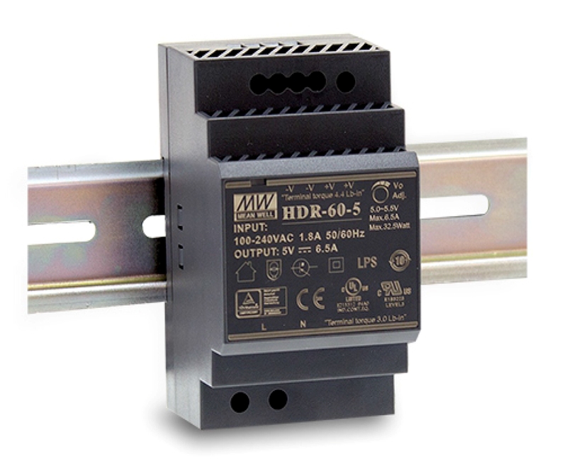 MEANWELL • HDR-60-5 • Průmyslový napájecí spínaný zdroj 5V 30W na DIN