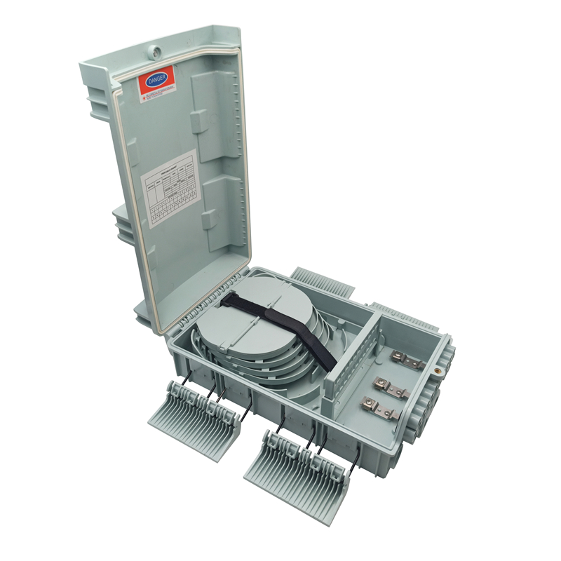 Díky vybavenosti boxu lze využít jako nejen jako koncový bod, ale i pro distribuci. Box je vybaven 4 výklopnými kazetami pro umístění až 96 svárů a čelem pro 24 SC adaptérů (48 vl. LC duplex ). Box je uzavírán 4 klipy po stranách a uzamykání je řešeno asymetrických klíčem.