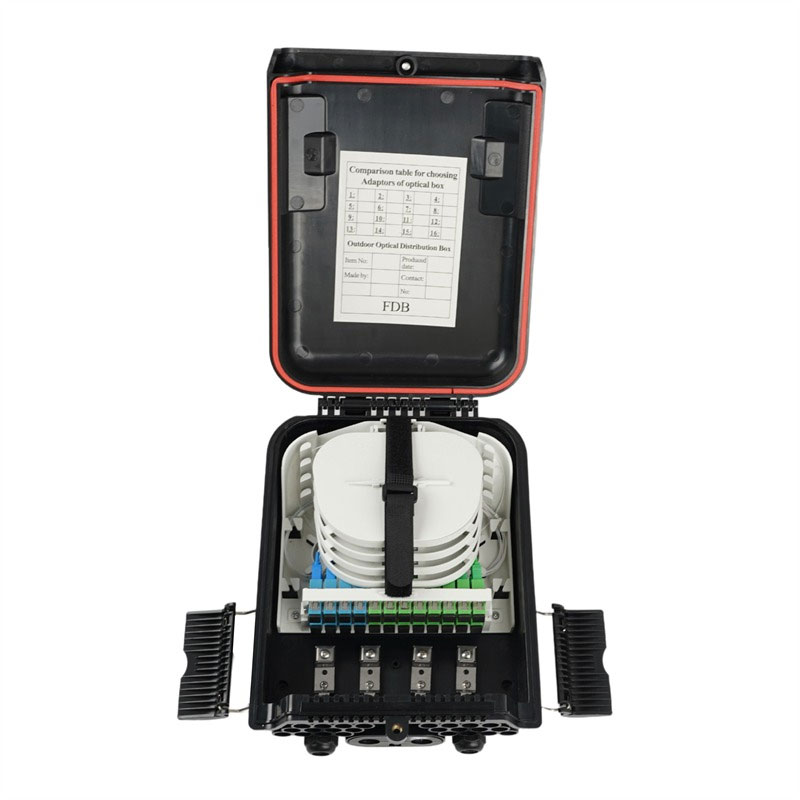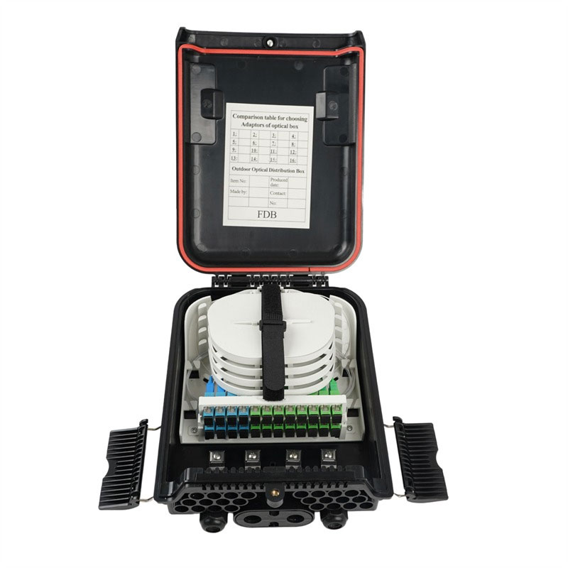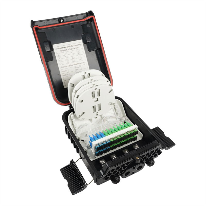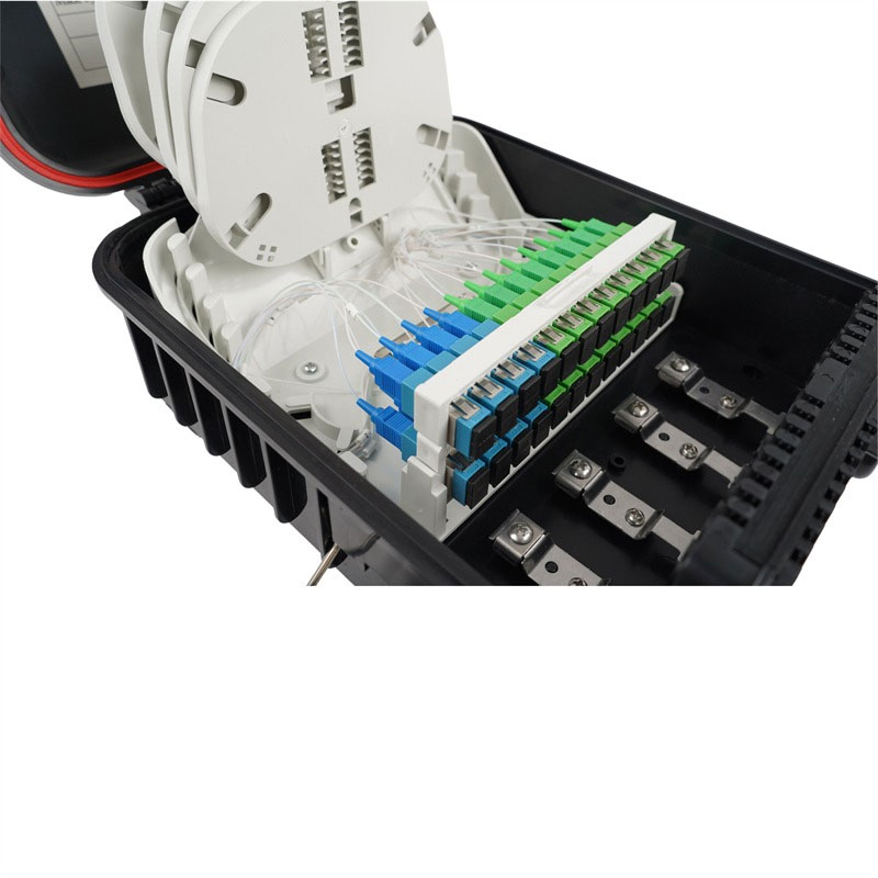 Díky vybavenosti boxu lze využít jako nejen jako koncový bod, ale i pro distribuci. Box je vybaven 4 výklopnými kazetami pro umístění až 96 svárů a čelem pro 24 SC adaptérů (48 vl. LC duplex ). Box je uzavírán 4 klipy po stranách a uzamykání je řešeno asymetrických klíčem.