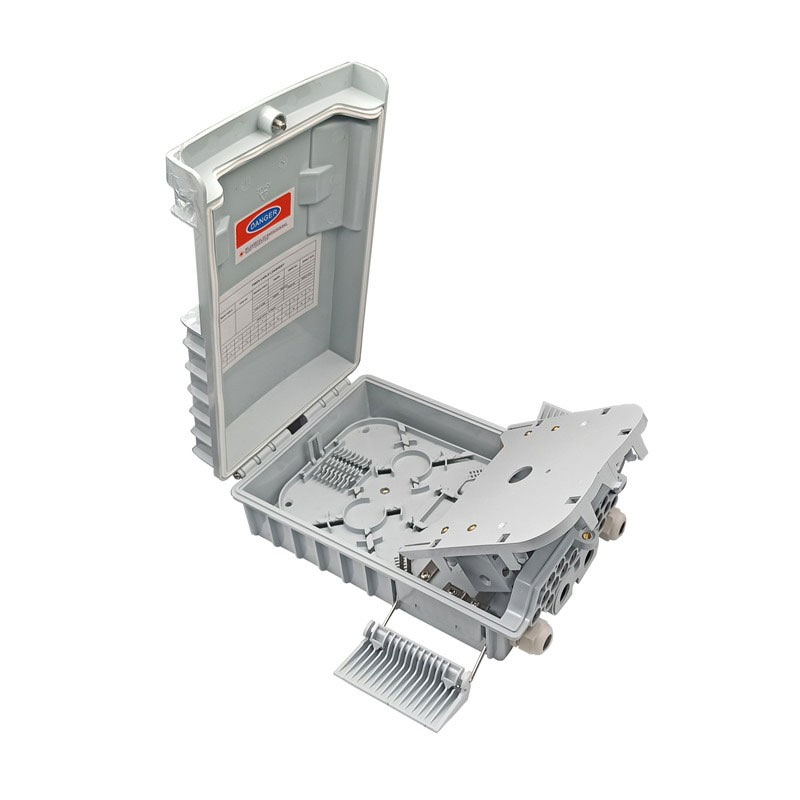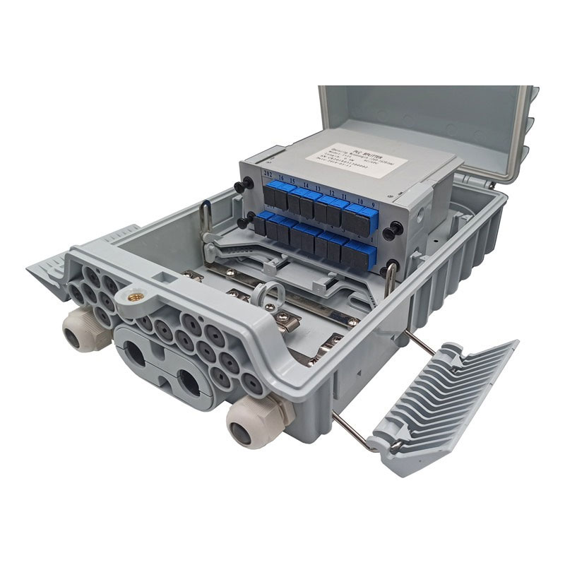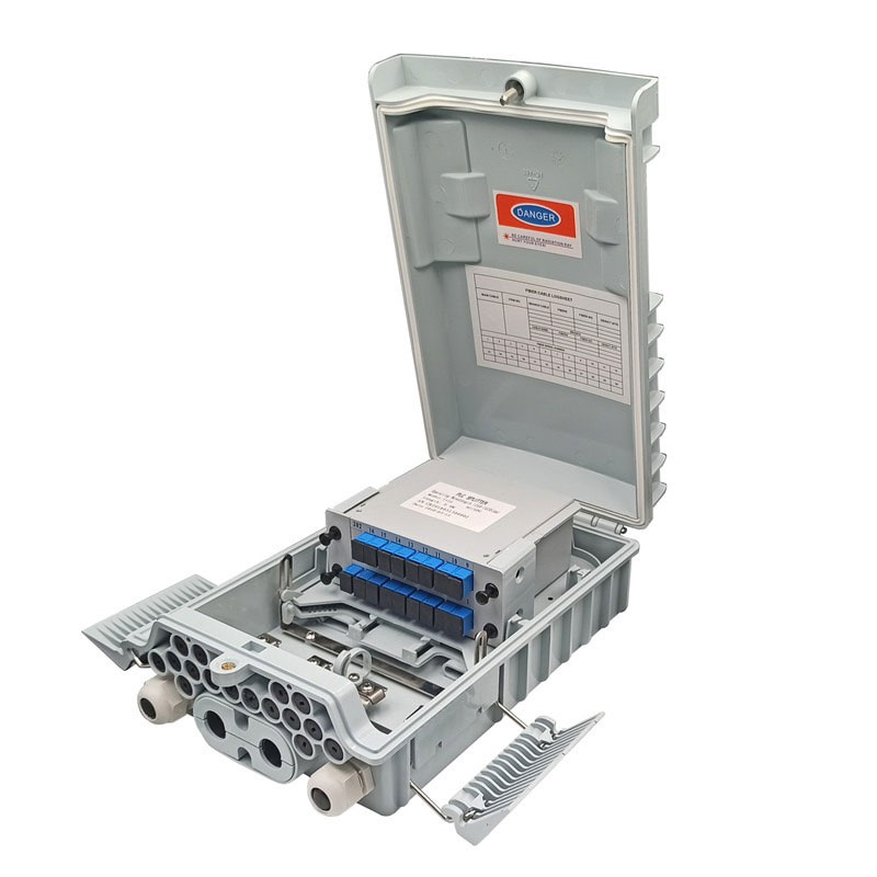 SJ-FTTH-SK18-B distribuční box s předem zakončeným kabelem může pojmout až 16 účastníků. Distribuční box se používá jako koncový bod pro přívodní kabel, který se propojuje s přívodním kabelem v systému sítě FTTx. Distribuční box integruje spojování vláken, rozdělování, distribuci, ukládání a připojení kabelů v jedné pevné ochranné skříni.
