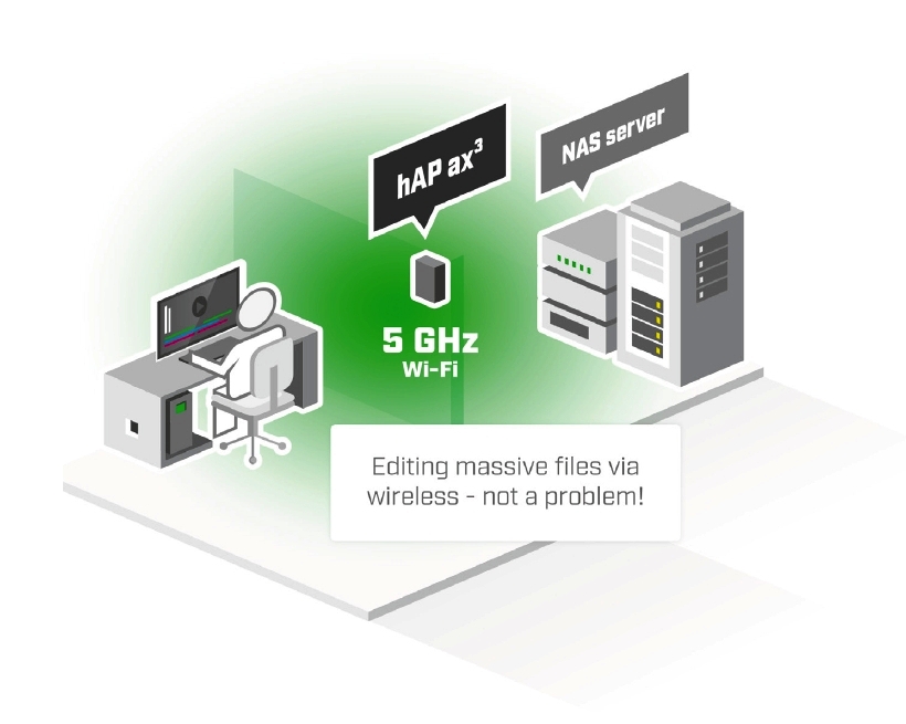 hAP ax3 je nejvýkonnější zařízení AX (WiFi 6) s dosud nejlepším pokrytím bezdrátovou sítí. Je vybaveno moderním čtyřjádrovým procesorem ARM s frekvencí 1,8 GHz a dostatečnou pamětí (1 GB RAM + 128 MB NAND).