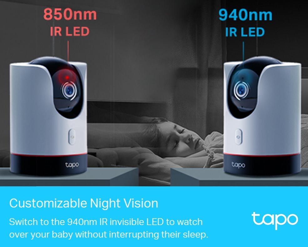 • Noční vidění - Přepněte na 940nm IR neviditelnou LED a hlídejte své dítě bez přerušení spánku