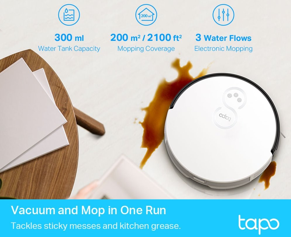 Robotický vysavač TP-Link Tapo RV10 s integrovaným mopem vám umožní rychle a bez námahy uklidit celou vaši domácnost. Elektronické čerpadlo pro mokrý úklid se přizpůsobí všem typům podlah. Sání vysavače vás zbaví veškerých nečistot včetně prachu skrytého v kobercích.