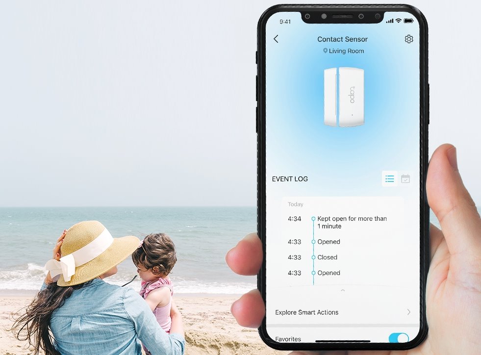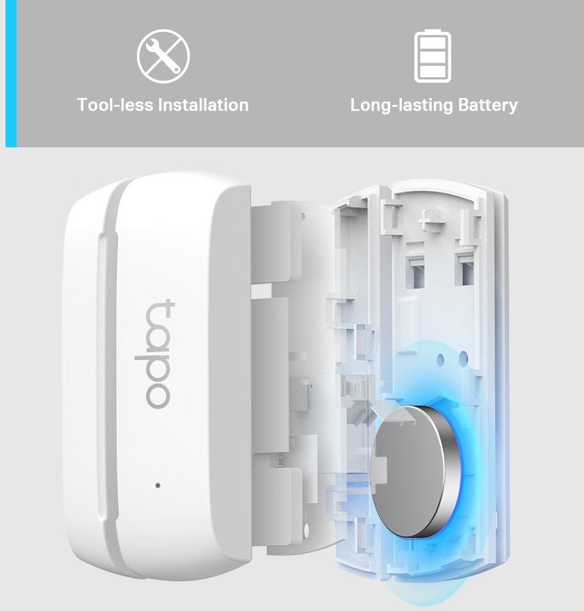 Smart senzor slouží pro zjištění stavu otevření či zavření okna či dveří (skříně, lednice, poštovní schránky, ...) a je součástí chytré rodiny Tapo smart home. Tento senzor je napájen malou CR2023 baterií s dlouhou výdrží, komunikuje bezdrátovou frekvencí 868/922 MHz s ústřednou, která je nezbytná pro fungování senzoru. Pro jednoduchou beznástrojovou instalaci na jakýkoliv rovný povrch slouží na zadní straně senzoru oboustranná lepící páska značky 3M.