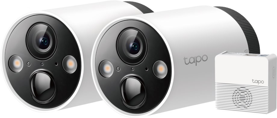 Kamerový set obsahující centrální hub H200 připojený do sítě ethernetem a dvě bezdrátové venkovní kamery Tapo C420 s integrovanou baterií připojené k centrálnímu hubu H200. Kamery mají maximálním rozlišením 2560 x 1440px při 15 fps (4MP), velmi široký záběr 113° díky použitému fixnímu objektivu 3,18mm, Starlight senzor pro barevný obraz ve dne i v noci, odolné tělo se stupněm krytí IP65, IR přísvit pro zhoršenou viditelnost na 15m a obousměrné audio (mikrofon a reproduktor) ovládatelné z mobilní aplikace. Kamera je možné provozovat s připojeným USB kabelem nebo na baterii a to s výdrží po dobu až 180 dní.