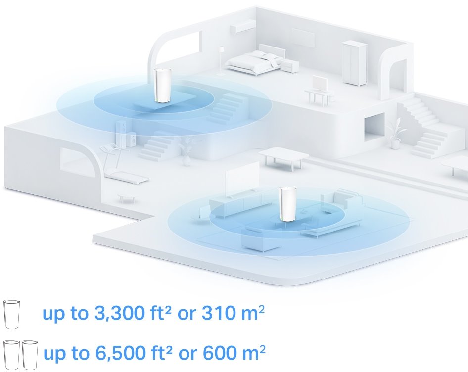 Deco XE200 je nejjednodušší způsob, jak zaručit silný signál Wi-Fi v každém rohu vašeho domova. Bezdrátové připojení a volitelné propojení všech jednotek buď ethernetovým kabelem, bezdrátově nebo kombinovaně poskytují ještě vyšší síťovou rychlost a skutečně bezproblémové pokrytí. Chcete více pokrytí? Stačí přidat další jednotku Deco.