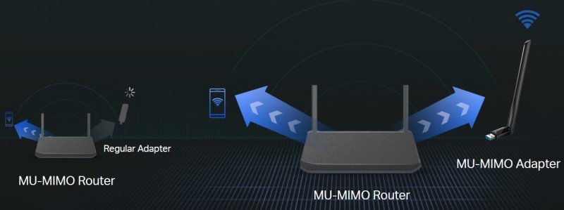 Technologie MU-MIMO poskytuje dva simultánní datové toky, které zlepšují propustnost a efektivitu celé sítě při práci s kompatibilním routerem MU-MIMO.