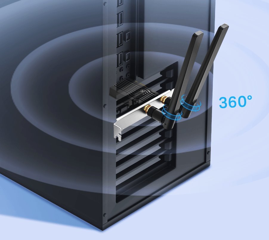 Kompaktní síťová karta vhodná do PCIe rozhraní, která je vybavena nejnovějším standardem Wi-Fi 6. Poskytuje extrémní přenosovou bezdrátovou rychlost, ultra nízkou latenci a nepřerušované připojení. Díky těmto vlastnostem si můžete užívat rychlejší stahování, plynulejší streamování a všepohlcující hraní.