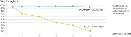 Díky neustále rostoucímu rozsahu sítě budou vzájemná rušení a kolize bezdrátových sítí mezi zařízeními CPE a základnovými stanicemi natolik velká, že skutečná propustnost sítě klesne, což velmi negativně pocítí koncový uživatelé. Ke zmírnění těchto negativních vlivů používá CPE220 technologii MAXtream TDMA.