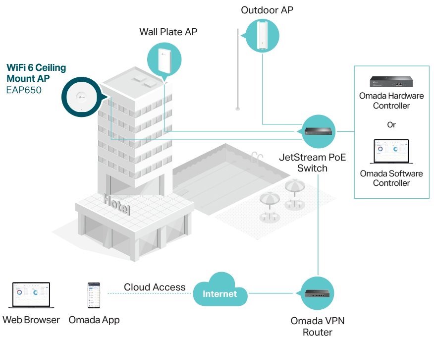 Můžete snadno spravovat a monitorovat stovky přístupových bodů EAP – a všechny z jednoho místa. Software TP-Link Omada Controller nabízí pro řízení celé sítě intuitivní rozhraní. Mějte celou síť a její mapování pod kontrolou z jakéhokoli počítače, který je v síti připojen. Nejsou zde žádné dodatečné náklady, ani není nutné procházet zvláštním školením. Správa firemní Wi-Fi sítě ještě nikdy nebyla tak efektivní a cenově výhodná.