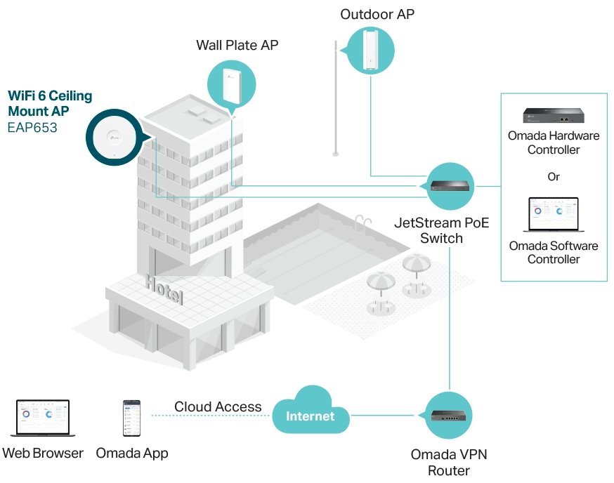 Můžete snadno spravovat a monitorovat stovky přístupových bodů EAP – a všechny z jednoho místa. Software TP-Link Omada Controller nabízí pro řízení celé sítě intuitivní rozhraní. Mějte celou síť a její mapování pod kontrolou z jakéhokoli počítače, který je v síti připojen. Nejsou zde žádné dodatečné náklady, ani není nutné procházet zvláštním školením. Správa firemní Wi-Fi sítě ještě nikdy nebyla tak efektivní a cenově výhodná.