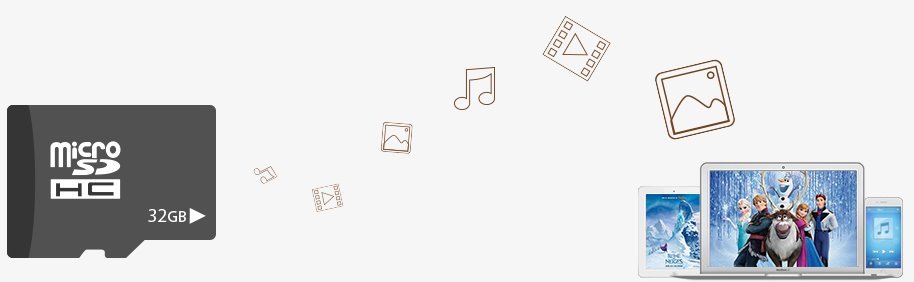 Ve své síti můžete snadno bezdrátově sdílet fotografie, hudbu, videa a jiné soubory prostřednictvím micro SD karty vložené do micro SD slotu – s kapacitou až 32 GB*.