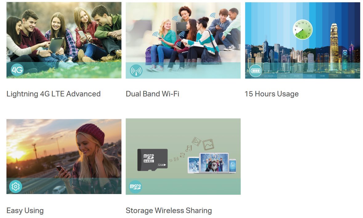 M7450 je kapesní 4G LTE router značky TP-Link, má integrovanou Dual Band WiFi - 300Mbps ve 2.4GHz pásmu a 866Mbps v 5GHz, vestavěnou baterii s kapacitou 3000mAh s výdrží až 15hodin, SD slotem pro karty do kapacity až 32GB a širokou podporou LTE kanálů.