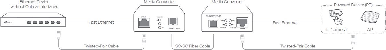 TP-LINK • TL-FC111PB-20 • 10/100 Mbps WDM Media konvertor s PoE-out
