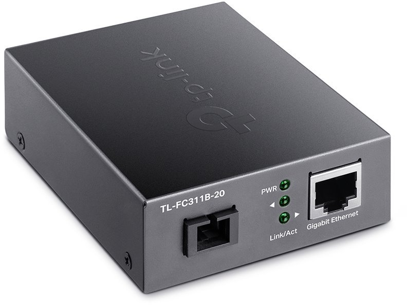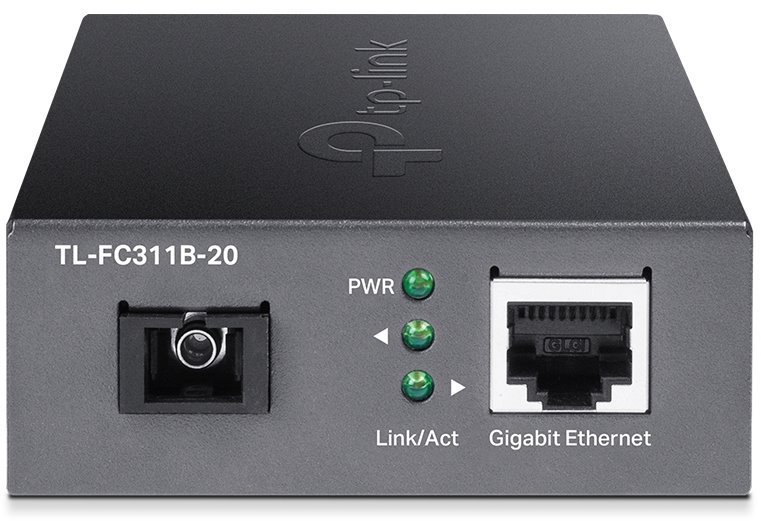 TL-FC311B-20 je opticko metalický WDM konvertor z RJ45 na optický SC konektor. Jeho maximální propustnost je 1000Mbps FD, čemuž je přizpůsobený i ethernetový port, který s vaším zařízením může komunikovat 10/100/1000Mbps. Konvertor lze použít na vzdálenost až 20km se single-mode (9/125um) optickým vláknem zakončeným jedním SC konektorem. Vlnová délka je 1310/1550nm (Tx/Rx) a pro správnou funkčnost je potřeba mít na protější straně nejlépe model TL-FC311A-20, který má opačné Tx a Rx než tento model.