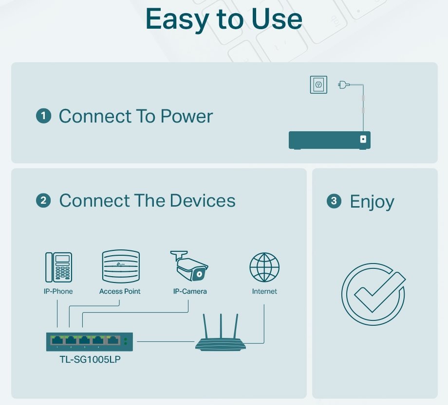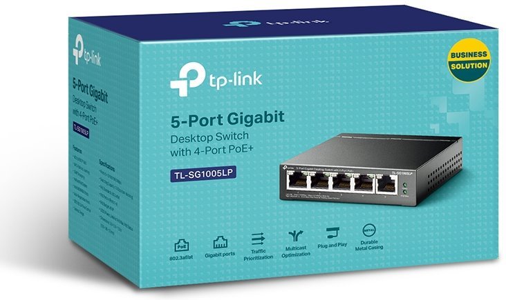 TP-Link PoE Switch TL-SG1005LP je nemanagovatelný Gigabitový PoE Switch s 5x 10/100/1000Mbps z čehož 4 porty podporují PoE-Out se standardem 802.3af/at (až 30W/port). Celkový PoE budget switche je 40W. Bonusem tohoto PoE switche je inteligentní Power Management pro případné odpojení PoE zařízení v případě nedostatečného PoE budgetu.
