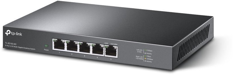 Firma TP-Link přichází s novou řadou Multi Gigabitových switchů, které dokážou navázat až 2.5Gbps link na každém portu. Tento základní model TL-SG105-M2 bez managementu v kovovém šasi má má celkově 5 metalických portů s rychlostí 100M/1G/2.5G, indikační LED na každém portu a jeden DC konektor pro napájení switche na zadní straně.